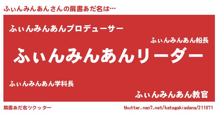 | 意味不明あだ名 | 『とにかく怪しいふぃんみんあん』 |