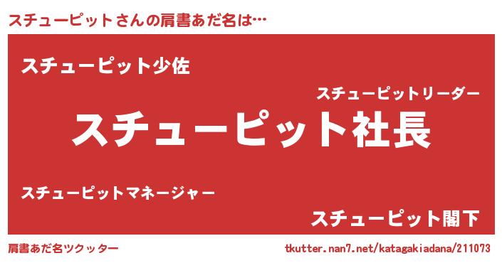| 男性向けラノベタイトル風あだ名 | 『スチューピットの憂鬱』 |