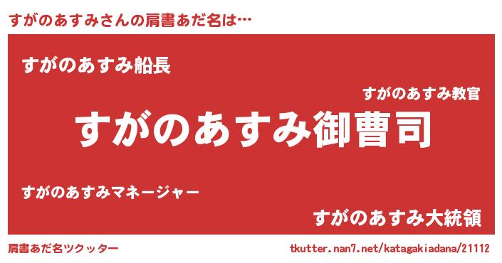 | 伝説のあだ名 | 『伝説のスナイパーすがのあすみ』 |