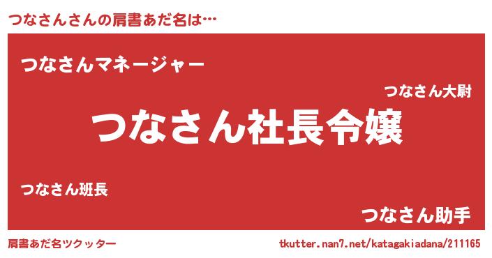 | 女子向けラノベタイトル風あだ名 | 『(仮)つなさんのやんごとなき事情』 |