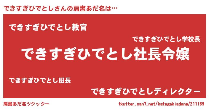 | 男性向けラノベタイトル風あだ名 | 『できすぎひでとしの憂鬱』 |