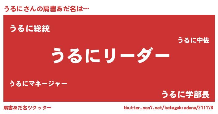 | 意味不明あだ名 | 『とにかく怪しいうるに』『自称うるに』 |