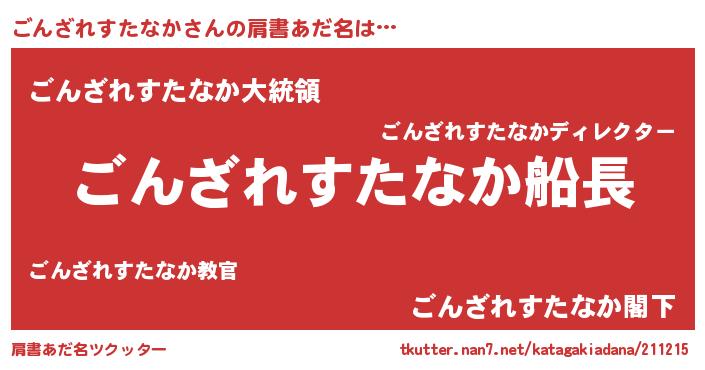 | 意味不明あだ名 | 『ごんざれすたなかフォーエバー』 |
