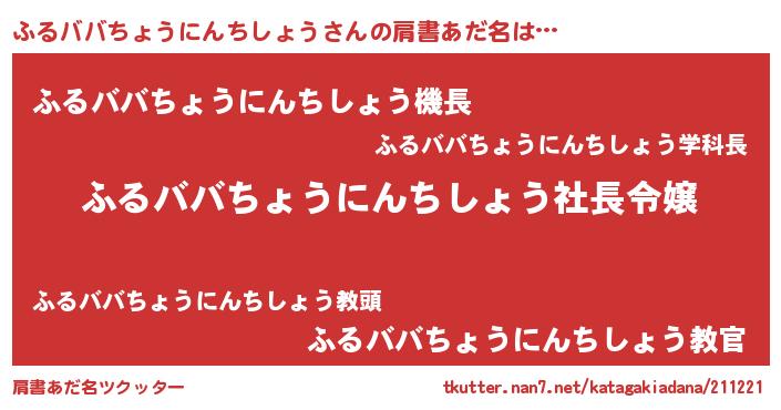| ヒーロー風カッコイイあだ名 | 『スーパーフルババチョウニンチショウ』 |