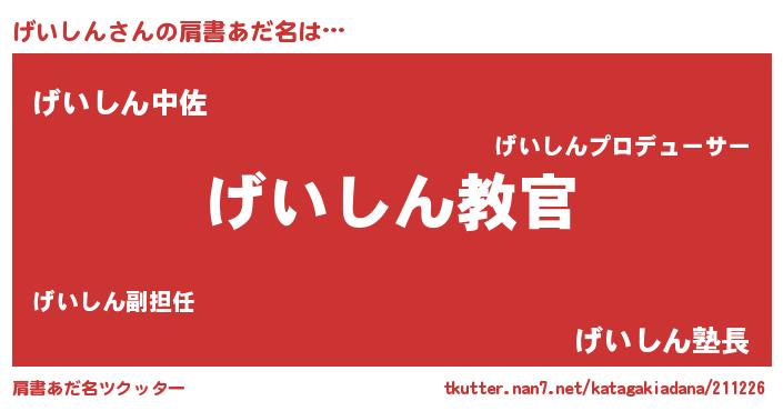 | ヘコむあだ名 | 『げい太郎』『げいしん(笑)』『豆乳』 |