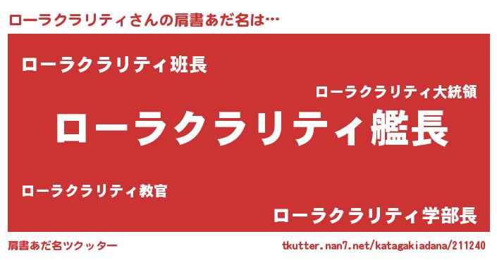 | 男性向けラノベタイトル風あだ名 | 『緋弾のローラクラリティ』 |