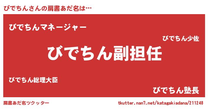| ヘコむあだ名 | 『びでちん(遠い目)』『びでを』 |