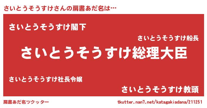 | 男性向けラノベタイトル風あだ名 | 『やはりさいとうそうすけの青春ラブコメはまちがっている 』 |