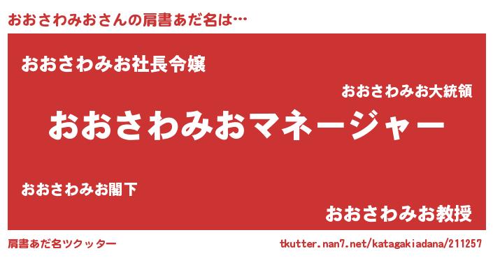 | 欧米人風あだ名 | 『アンジェラ・おおさわみお』 |
