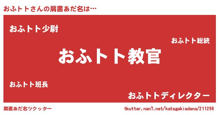| 男性向けラノベタイトル風あだ名 | 『この素晴らしい世界におふトトを!』 |