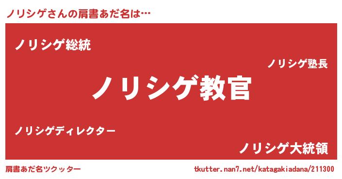 | 男性向けラノベタイトル風あだ名 | 『この素晴らしい世界にノリシゲを!』 |