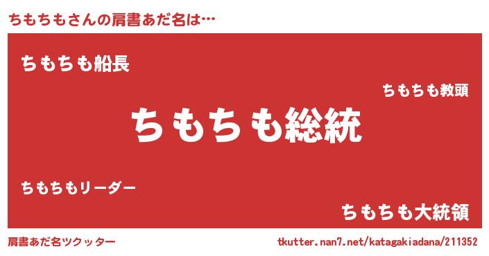 | 男性向けラノベタイトル風あだ名 | 『Re:ちもちもから始める異世界生活』 |