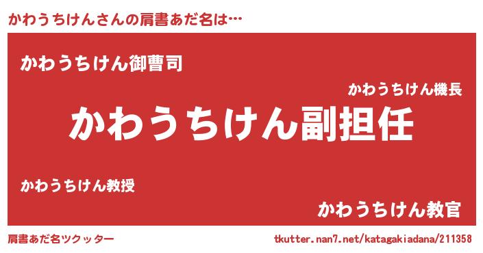 | ヘコむあだ名 | 『かわうちけん(震え声)』『かわっふぃ~』 |