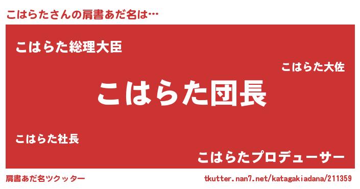 | 意味不明あだ名 | 『とにかく怪しいこはらた』 |