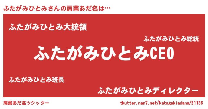 | ヒーロー風カッコイイあだ名 | 『スーパーフタガミヒトミ』 |