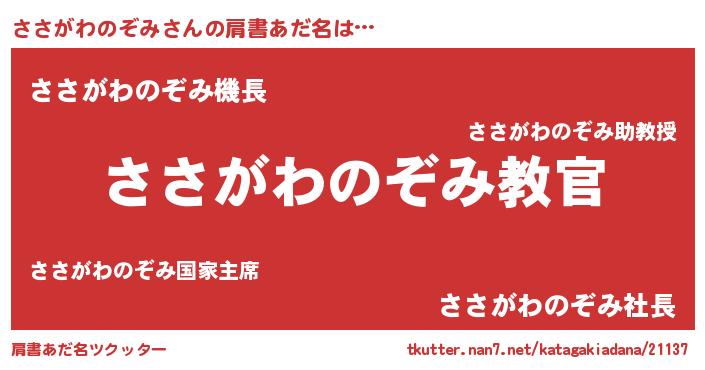 | 男性向けラノベタイトル風あだ名 | 『この素晴らしい世界にささがわのぞみを!』 |