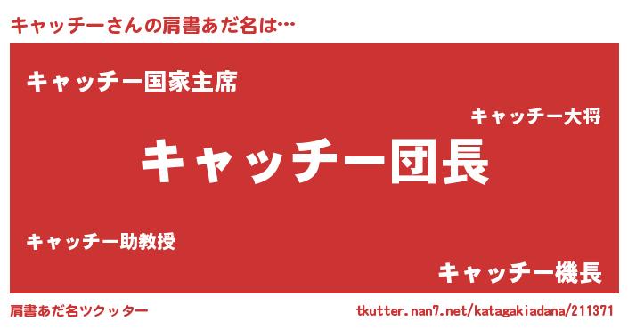 | 胡散臭い通販商品みたいなあだ名 | 『信頼と実績のサプリメント…その名も「キャッチー」』 |