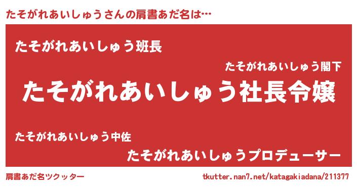 | ポケモン風あだ名 | 『タソチュウ』『ヒタソガレアイシュウ』 |