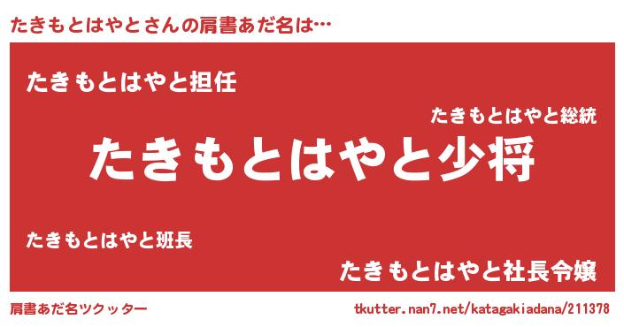 | 胡散臭い通販商品みたいなあだ名 | 『絶対に幸福をもたらす健康食品…その名も「たきもとはやと」』 |