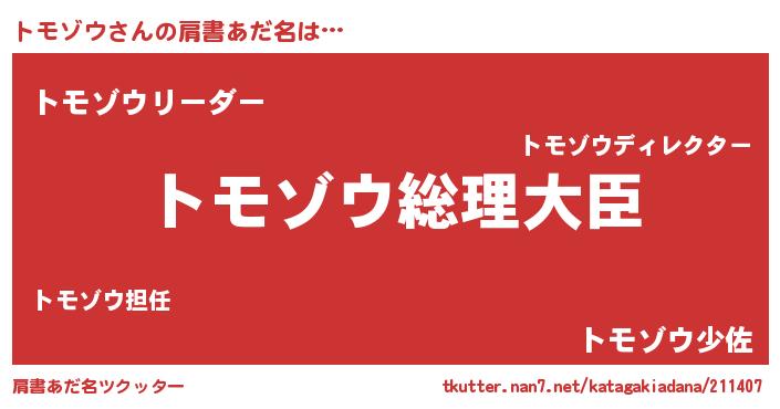 | 意味不明あだ名 | 『トモゾウフォーエバー』 |