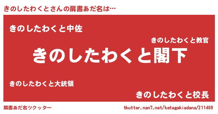 | 男性向けラノベタイトル風あだ名 | 『Re:きのしたわくとから始める異世界生活』 |