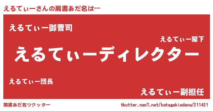 | 男性向けラノベタイトル風あだ名 | 『えるてぃーに滅ぼされるだけの簡単なお仕事です』 |