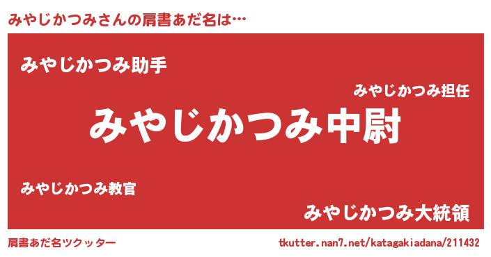 | ヒーロー風カッコイイあだ名 | 『愛の使者みやじかつみ』『仮面ミヤダー』 |