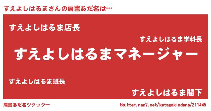 | 男性向けラノベタイトル風あだ名 | 『すえよしはるまに滅ぼされるだけの簡単なお仕事です』 |