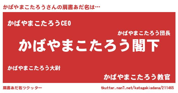 | 欧米人風あだ名 | 『ケンブリッジかばやまこたろう』 |