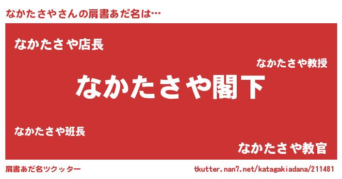 | 男性向けラノベタイトル風あだ名 | 『魔法科高校のなかたさや』 |