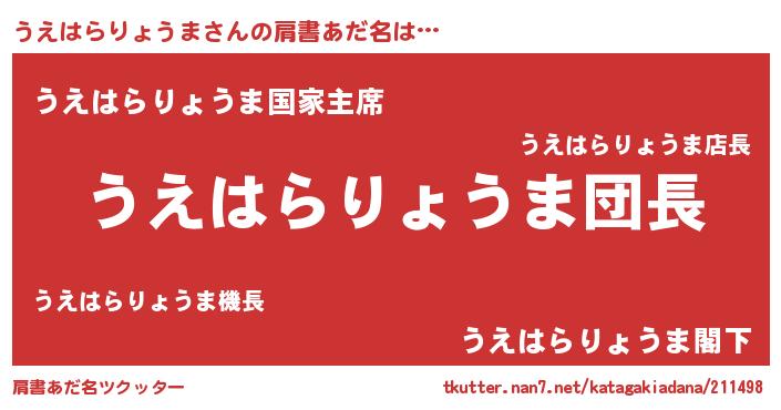 | ポケモン風あだ名 | 『ヒウエハラリョウマ』『ウエハダネ』 |