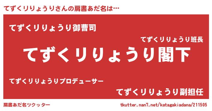 | 意味不明あだ名 | 『自称てずくリりょうり』 |