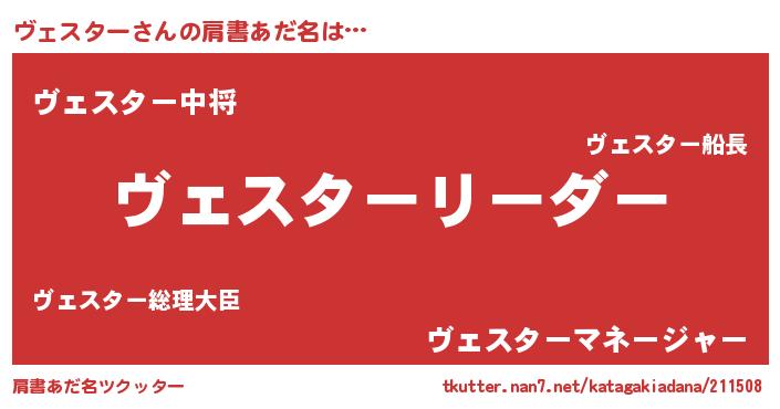 | 意味不明あだ名 | 『とにかく怪しいヴェスター』 |