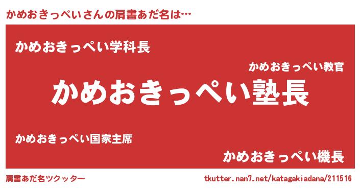 | 意味不明あだ名 | 『とにかく怪しいかめおきっぺい』 |