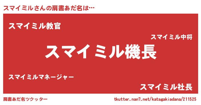 | ヘコむあだ名 | 『スマっふぃ~』『スマイミル(小並感)』 |