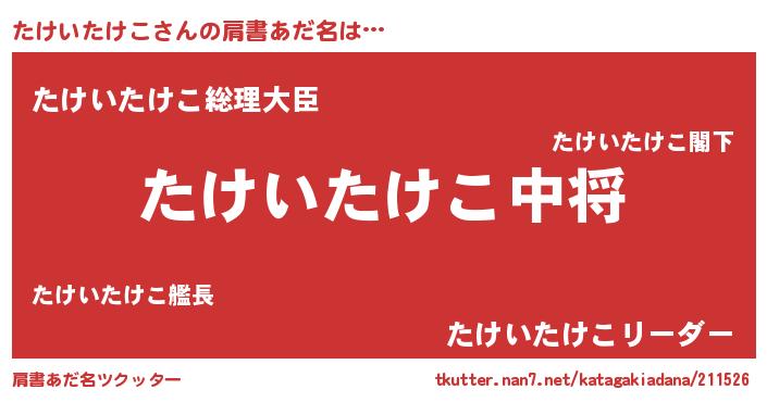 | 男性向けラノベタイトル風あだ名 | 『タケイタケコスレイヤー』 |