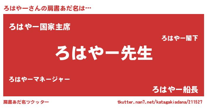 | ヘコむあだ名 | 『ろはやー(笑)』『つくし』『ろはお』 |