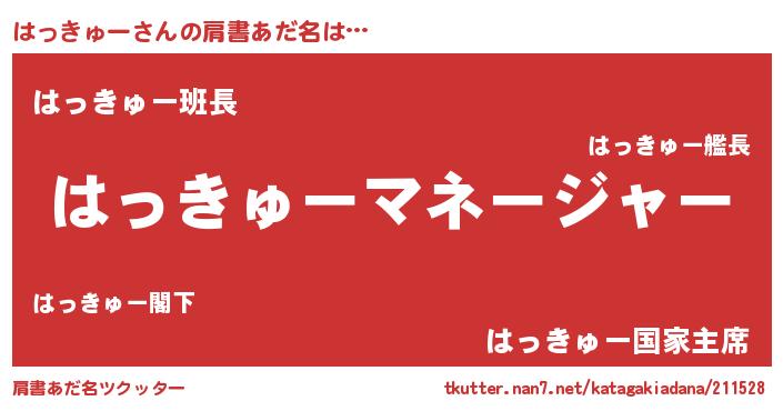 | 男性向けラノベタイトル風あだ名 | 『はっきゅーに滅ぼされるだけの簡単なお仕事です』 |