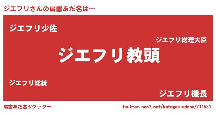 | 男性向けラノベタイトル風あだ名 | 『ジエフリという概念が存在しない退屈な世界 』 |