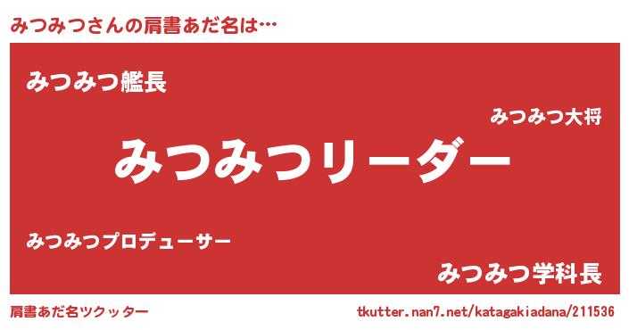 | ヒーロー風カッコイイあだ名 | 『暗黒騎士ミツ』『天空の使者みつみつ』 |