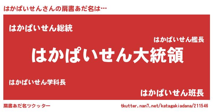 | 男性向けラノベタイトル風あだ名 | 『やはりはかぱいせんの青春ラブコメはまちがっている 』 |
