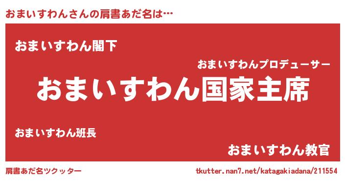 | ファンタジー風あだ名 | 『エターナルオマイスワンー』 |