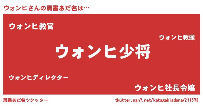 | 男性向けラノベタイトル風あだ名 | 『ウォンヒ~年齢イコール彼女いない歴の魔法使い~』 |