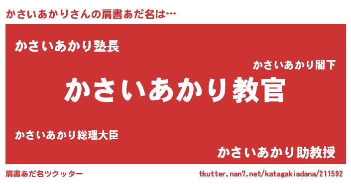 | 男性向けラノベタイトル風あだ名 | 『この素晴らしい世界にかさいあかりを!』 |