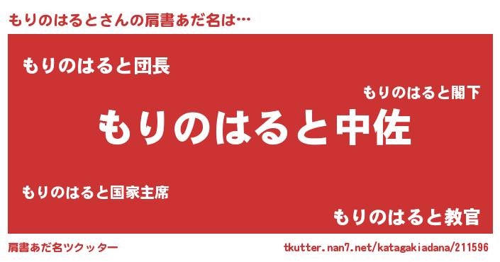 | 男性向けラノベタイトル風あだ名 | 『もりのはると~年齢イコール彼女いない歴の魔法使い~』 |