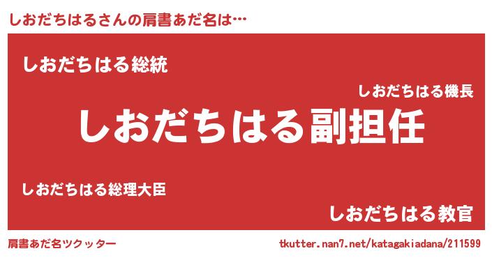 | 男性向けラノベタイトル風あだ名 | 『誰もが恐れるあのしおだちはるが、ぼくの専属メイドになるようです。』 |