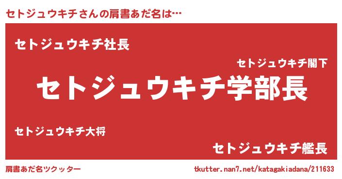 | 男性向けラノベタイトル風あだ名 | 『ノーゲーム・ノーセトジュウキチ』 |
