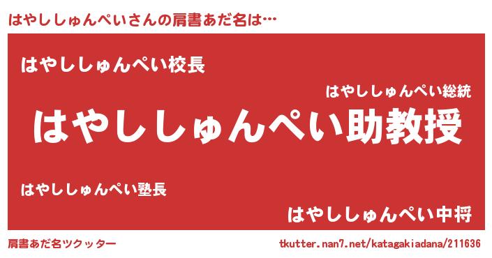 | ヘコむあだ名 | 『はやししゅんぺい(笑)』『はやっ子』 |