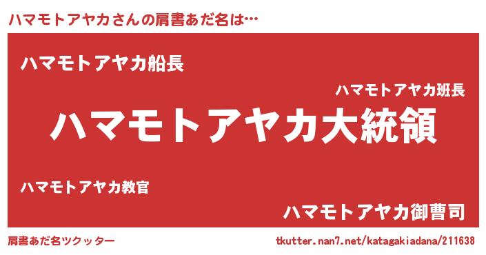 | 男性向けラノベタイトル風あだ名 | 『やはりハマモトアヤカの青春ラブコメはまちがっている 』 |