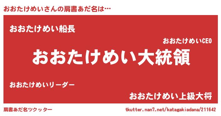 | 欧米人風あだ名 | 『おおたけめいクリステル』 |